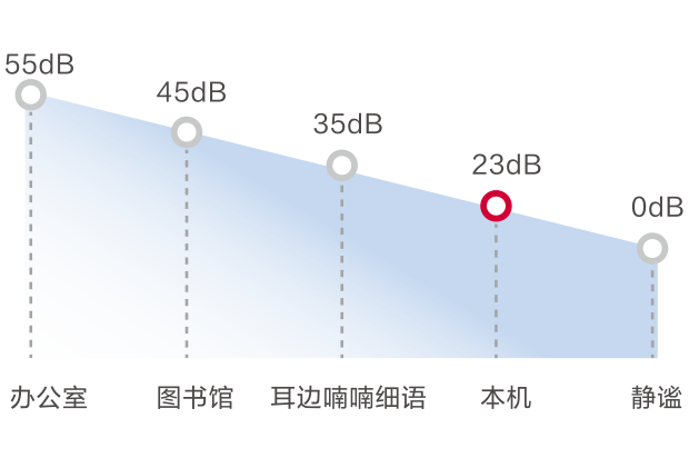 內(nèi)置高效低噪風(fēng)機(jī),通過先進(jìn)的內(nèi)部消音裝置和空氣通道優(yōu)化,有效的降低機(jī)組噪音。最小運行噪音為23dB(A),不影響用戶的睡眠和休息。