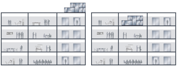 日立直膨AHU機(jī)組結(jié)構(gòu)緊湊,占地面積小,當(dāng)室內(nèi)空間不足時,可放置于室外,兩種方式自由選擇,靈活安裝