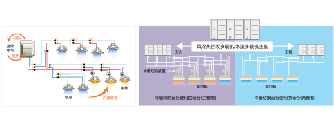 日立風(fēng)冷熱回收多聯(lián)機(jī)和日立水源多聯(lián)機(jī),可實(shí)現(xiàn)部分室內(nèi)機(jī)制冷運(yùn)行時、部分室內(nèi)機(jī)同時制熱運(yùn)行,尤其對于有穩(wěn)定散熱量的醫(yī)技設(shè)備房間和有明顯內(nèi)外分區(qū)的情況,將制冷房間的熱量回收,轉(zhuǎn)移到制熱房間內(nèi),滿足用戶個性化使用需求的同時,節(jié)能性更突出。