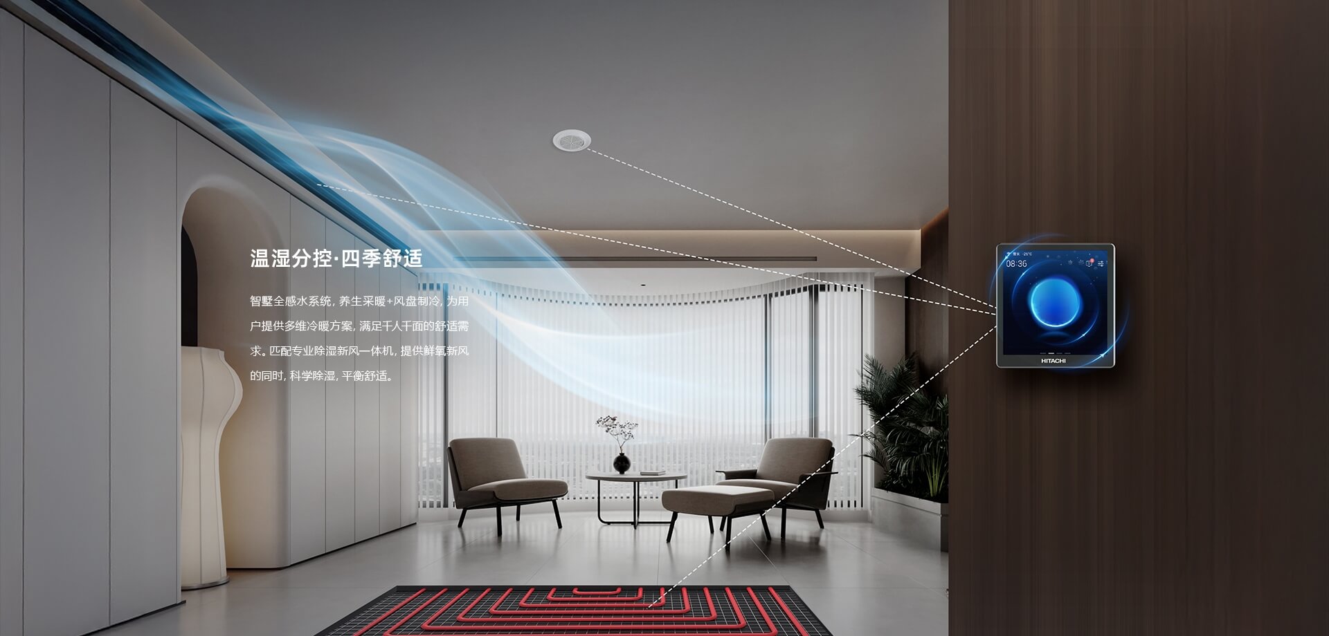 日立智慧屏進(jìn)一步升級,可實現(xiàn)空調(diào)、地暖、新風(fēng)、除濕、加濕系統(tǒng)一體化控制,也可獨立操控,高效便捷。系統(tǒng)間的聯(lián)動控制可實現(xiàn)自動化空氣管理,AI級智能調(diào)節(jié),復(fù)雜系統(tǒng)簡單設(shè)定,一鍵運(yùn)行,使用無憂。