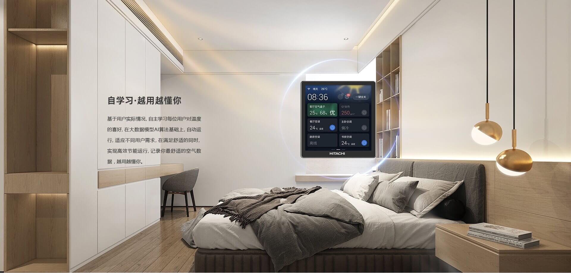 基于日立大數(shù)據(jù)模型AI技術(shù),一鍵即可自動調(diào)節(jié)房間的溫度、濕度、新風(fēng),讓機(jī)組處于最佳運(yùn)行狀態(tài),節(jié)能提升8%以上。