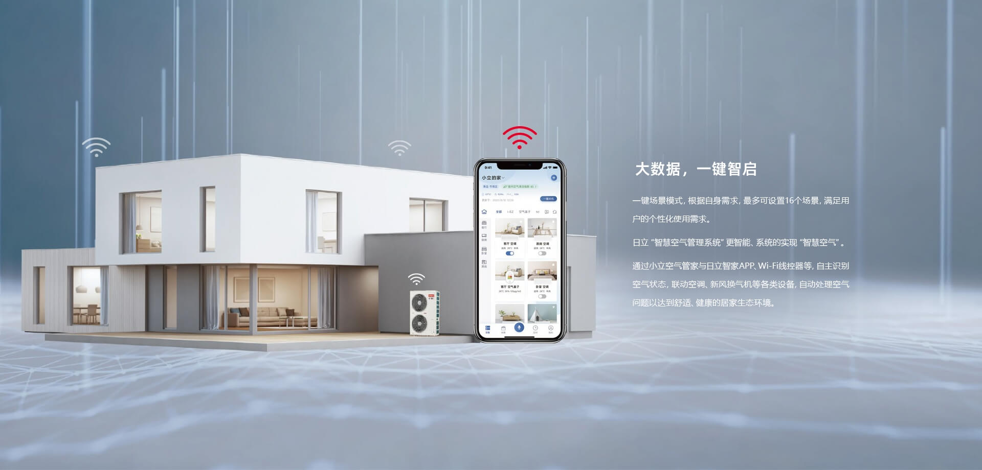 基于日立大數(shù)據(jù)模型AI技術,一鍵即可自動調(diào)節(jié)房間的溫度、濕度、新風,讓機組處于最佳運行狀態(tài),節(jié)能提升8%以上。