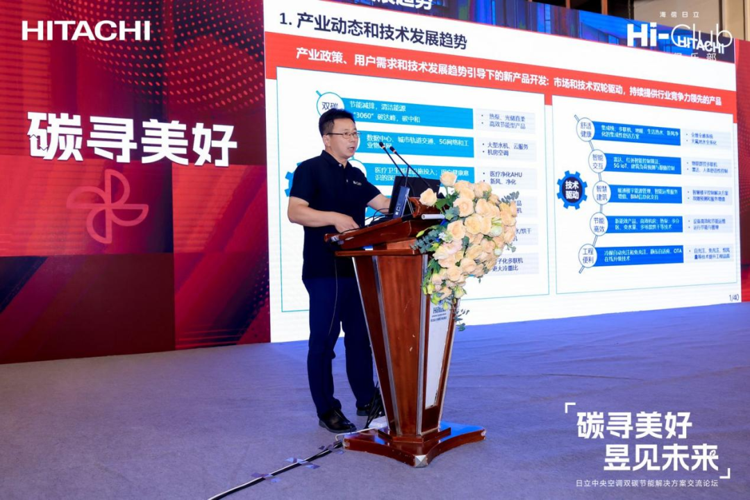 “雙碳”背景之下,將綠色技術(shù)與產(chǎn)業(yè)場景、需求深度融合應用,不斷書寫暖通行業(yè)從技術(shù)研發(fā)到生產(chǎn)制造、以及實踐應用等方面的全新表達,無疑已成行業(yè)重要命題。日立中央空調(diào)客戶支持部副總經(jīng)理鄧玉平以《雙碳技術(shù)研發(fā)與先進制造》為題,系統(tǒng)分享了日立在低碳節(jié)能領域的全方位布局實踐。他表示,日立在產(chǎn)業(yè)政策、用戶需求和技術(shù)發(fā)展趨勢引導下構(gòu)建新產(chǎn)品開發(fā),以市場和技術(shù)雙輪驅(qū)動,持續(xù)提供具有行業(yè)競爭力的產(chǎn)品。